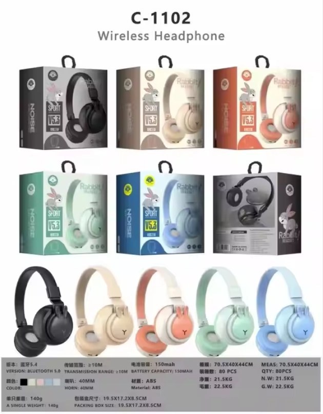 هدفون طرح خرگوش مدل C-1102 بلوتوث : ورژن 5.3 رنج : 10 متر مدت زمان شارژ : 2 ساعت ولتاژ َشارژ : DC 5V ظرفیت باتری : 200mAh زمان استندبای : بیش از 200 ساعت